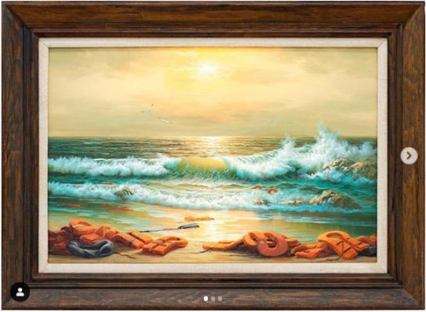 تم تعليق العمل، الذي يحمل عنوان "مشهد البحر الأبيض المتوسط لعام 2017"، في الأصل في فندق في بيت لحم، وهو فندق تم إنشاؤه على بعد أمتار من حاجز الضفة الغربية.