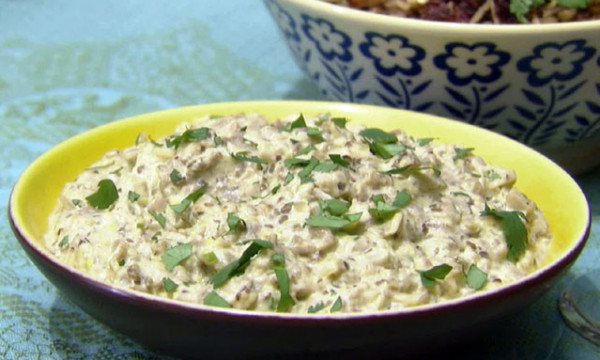 6- زينيها بالرمان، أوراق النعناع والصنوبر المحمص.