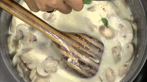 5- ارفعي الصلصة عن النار وأضيفي البارميزان والبقدونس.