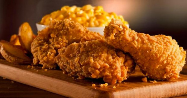 يقلى الدجاج في زيت غزير ومغلي، حتى يُصبح لونه ذهبيًا.