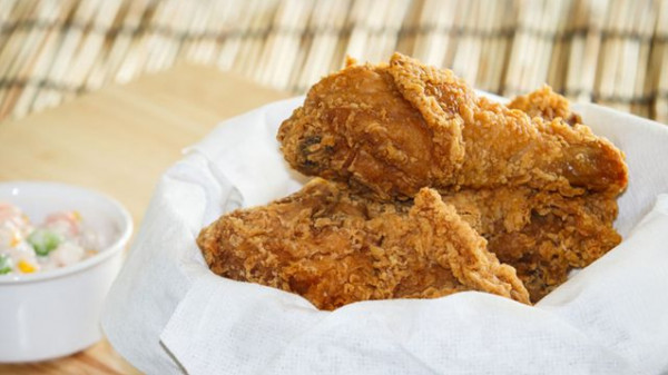 5- صفّي الدجاج من الزيت وضعيه على محارم ورقية في طبق. قدّميه ساخناً.