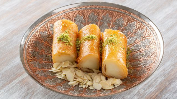 8- ارفعي الصينية من الفرن، اسقيها بالقطر البارد وقدميها على سفرتك.