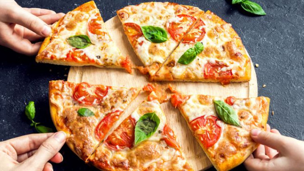 7- أخرجي الصينية من الفرن وقدّمي البيتزا على سفرتك.