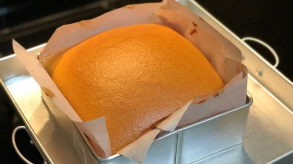 9- غلّفي صينية فرن بورق قصدير وبطّنيها من الداخ بورق زبدة على أن تتعدّى أطراف هذه الأخيرة حواف الصينية. أسكبي خليط الكيك في صينية الفرن وسوي الوجه بواسطة سباتولا.