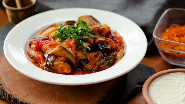 6- أسكبي مسقعة الباذنجان في طبق التقديم وقدميها على سفرتك.
