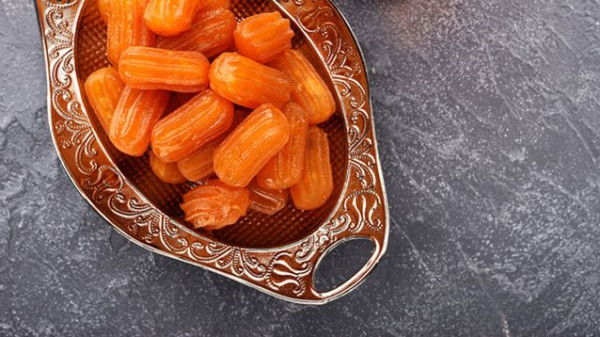 9- غمسي بلح الشام في القطر ثم ضعيه في طبق التقديم.