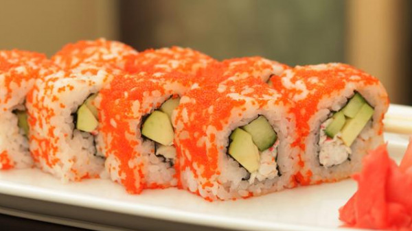 9- غمّسي كل رول من السوشي ببيض السمك من جميع الجهات ثم زيّني بها سفرتك.