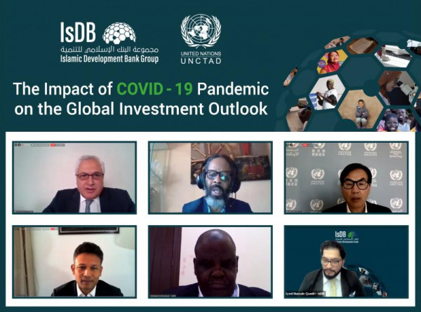 استضافت مجموعة البنك الإسلامي للتنمية ندوة عبر الإنترنت بشأن تأثير جائحة (كورونا)، على آفاق الاستثمار العالمي والتي نظمتها مجموعة البنك الإسلامي للتنمية بالتعاون بين مؤتمر الأمم المتحدة للتجارة والتنمية (الأونكتاد) وإدارة الاستراتيجية القطرية والتعاون بالبنك الإسلامي للتنمية في 17 نوفمبر 2020م وذلك لمناقشة تأثير(COVID-19) على الاستثمار المباشر والتجارة في الدول الأعضاء لمنظمة التعاون الإسلامي.