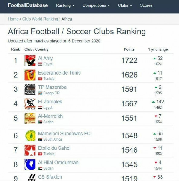 تصدر الأهلي المصري، تصنيف قائمة الفرق الأفريقية والعربية، وفق آخر التصنيفات.