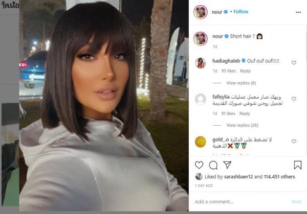 وكتبت الغندور على صورتها قائلةً: "شعر قصير؟" مع علامة استفهام مما يعني أنها تريد رأي جمهورها في اللوك قبل أن تقوم باعتماده.