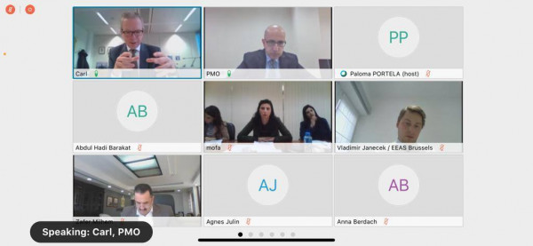 افتتحت اللجنة الفلسطينية الأوروبية المشتركة أعمالها عبر الاتصال المرئي، برئاسة مستشار رئيس الوزراء، اسطفان سلامة، ونائب المدير العام لمنطقة الشرق الأوسط، وشمال إفريقيا في الاتحاد الأوروبي، كارل هالرجارد.