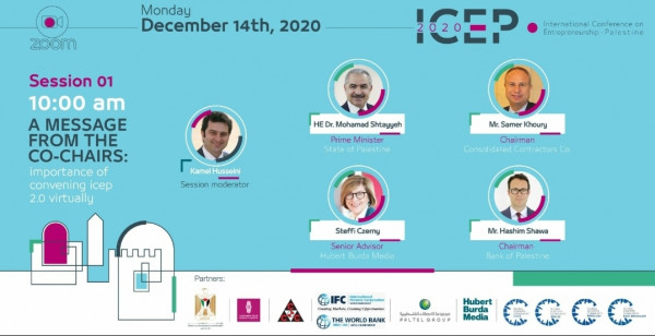 اختتمت، اليوم الاثنين، فعاليات المؤتمر الدولي الثاني للريادة والتكنولوجيا في فلسطين (ICEP 2.0)، الذي عقد عبر تقنية (زووم)، بعنوان "تمكين الجيل الرقمي في فلسطين"، تحت رعاية رئيس الوزراء محمد اشتية، وبمشاركة أكثر من 1000 مشارك من الرياديين، وأصحاب الشركات الناشئة الفلسطينية، وممثلي المؤسسات الرسمية والقطاعين الخاص والأهلي.