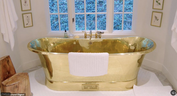 وظهرت جينير البالغة من العمر 25 عاما وهي تتجول في أرجاء المنزل، وتشرح تفاصيله المبهرة والراقية، ولكن الملفت بالأمر ظهور حوض الاستحمام المصنوع من الذهب الخالص، والذي قدر بنحو 40 ألف دولار وفق ما نشرت صحيفة (ليالينا).