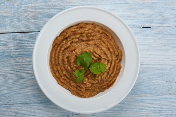 2. اهرسي الباذنجان في وعاء حتى يصبح ناعماً.
