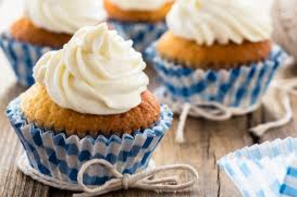 11. تزيين الـ"كب كيك": تزين قوالب الـ"كب كيك" بكريما الفانيليا عن طريق خفق الزبدة والسكّر المطحون ورشة من الفانيليا، وذلك حتى يتكوّن خليط كريميّ القوام، ويوزّع خليط الكريما في كيس الحلواني، ويوزّع على القوالب.