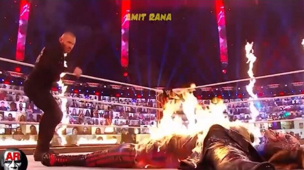 والفوز في هذه المباراة يكون باحراق الخصم، في سهرة عرض المصارعة الترفيهية "WWE".