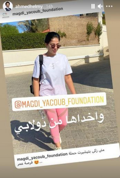 وكعادته دائماً يتحلى حلمي بحس الفكاهة، فشارك لزوجته الممثلة منى زكي، على خاصية (الستوري)صورة وهي ترتدي (تي شيرت) الذي يحمل شعار حملة التبرعات لمستشفى الدكتور مجدي يعقوب، وعلق عليها "واخداها من دولابي".