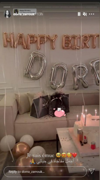 ونشرت درة مقطع فيديو عبر خاصية (ستوري) على حسابها الخاص عبر نطبيق (إنستغرام)، استعرضت خلاله المفاجأة التي حضّرها لها زوجها في عيد ميلادها، إذ زين المنزل بالبالونات والهدايا إضافة إلى كتابة اسمها بأحرف كبيرة على علب الهدايا وقالب الحلوى، وفق (زهرة الخليج).