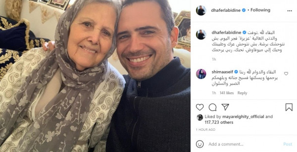 أعلن الفنان التونسي ظافر العابدين عن وفاة والدته فجر اليوم السبت، عبر نشر تعزية من خلال حسابه الشخصي لتطبيق تبادل الصور والفيديو (أنستجرام) معلقا:" البقاء لله، توفيت والدتي الغالية 'عزيزة' فجر اليوم. بش نتوحشك برشة، بش نتوحش عزك وطيبتك وحبك إلي ميوفاوش. نحبك. ربي يرحمك".