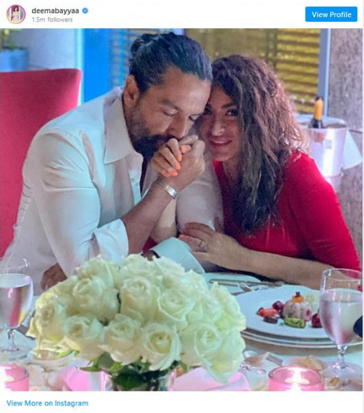 عبّرت الممثلة السورية ديمة بياعة عن عشقها لزوجها المغربي أحمد الحلو بمناسبة عيد الحب من خلال صورة رومنسية لهما نشرتها عبر موقع تبادل الصور (انستغرام).