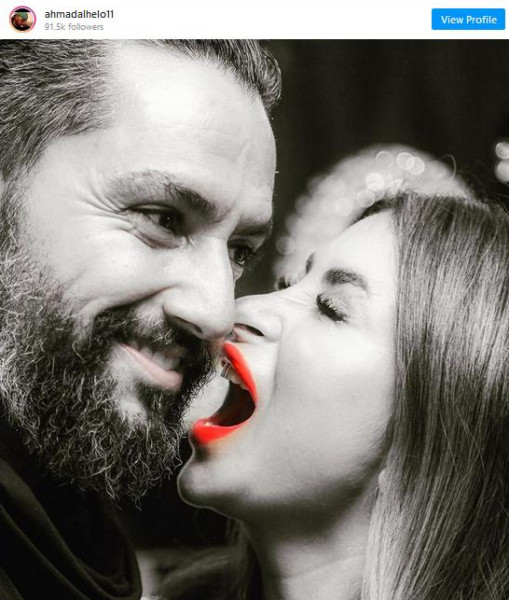 بدوره، نشر أحمد صورة لهما معاً وعلق عليها: "بحبك يا مرتي ورفيقتي يخليك ليلي كبيدة ديالي كل يوم معك عيد حب جديد".