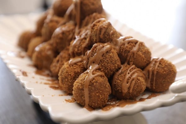 شكّلي كرات متساوية الحجم من العجينة ثمّ ضعيها في طبق التقديم.