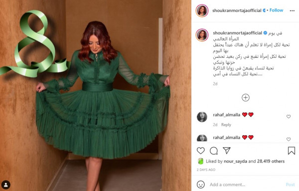 و حرصت شكران على معايدة المرأة في يومها العالمي من خلال صورة لها نشرتها عبر تطبيق (انستغرام)، وعلّقت عليها: "في يوم المرأة العالمي.. تحية لكل إمرأة لا تعلم أن هناك عيداً يحتفل بها اليوم.. تحية لكل إمرأة تقبع في ركن بعيد تحضن حزنها وتبكي.. تحية لنساء يقبعنَ في زوايا الذاكرة.. تحية لكل النساء في أمي".