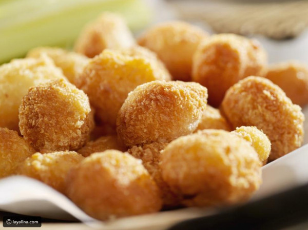 شكلي من الخليط كرات متوسطة الحجم واغمري الكرات في الدقيق ثم في البيض وثم في البقسماط، وتأكدي من تغليف الكرات جيداً في (الدقيق، البيض، البقسماط).