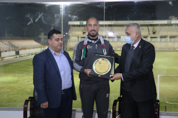 كرم الدكتور محمد عوض رئيس متابعة العمل الحكومي، وعبد السلام هنية مساعد أمين عام المجلس الأعلى للشباب والرياضة، أبطال منتخب فلسطين لألعاب القوى لذوي الإعاقة، الذين شاركوا في الملتقى الدولي في تونس، مساء اليوم الأربعاء في مجمع فلسطين الرياضي.