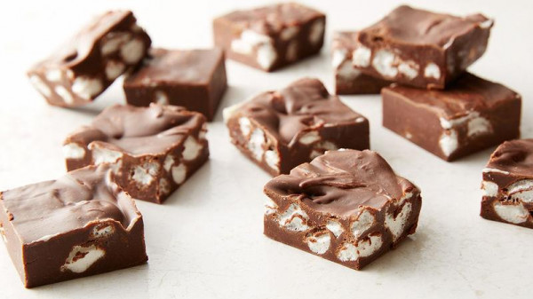 أضيفي كمية المارشميلو والمكسرات المتبقية فوق الصينية ورصّيها جيداً حتى تتداخل.
