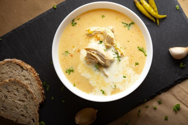 4. أضيفي قطع الدجاج المسلوقة، واتركيه على النار حتى الغليان، ثم ارفعي الشوربة من على النار.