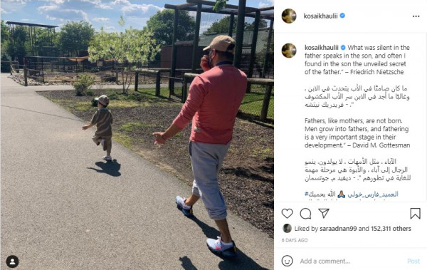وعلق خولي على الصورة، قائلاً: "بحب هالصورة.. يسعد أوقاتكم جميعاً".