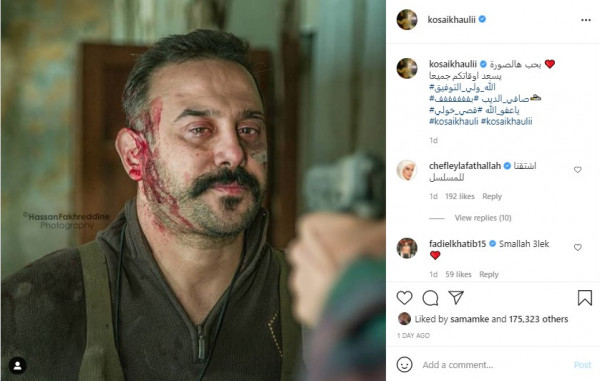 وظهر الفنان السوري في الصورة مغطى وجهه بالدماء والدموع تتجمع في عينيه، في مشهد تعاطف معه الآلاف من المشاهدين أقناء عرض المسلسل، وفق (لها).