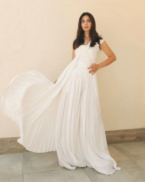طبقت ديما الأسدي صيحة الفساتين بالتنورة البليسيه الواسعة، وتميز التصميم بالبساطة والنعومة، و في إطلالة أخرى، اختارت فستان أبيض بأكمام متوسطة الطول، مع تنورة A Line بطول متوسط، وأضافت لمسة الأسود في حزام الخصر.