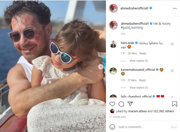 كذلك نشر زاهر صوراً جديدة مع إبنته الصغيرة نور وكان فيها على متن مركب ويستمتعان بالأجواء الصيفية الممتعة، وعلق عليها قائلا: "مع نوني"، لتنهال عليه اللايكات والتعليقات التي تغزلت بجمال الطفلة.