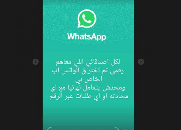 و وجهت رانيا التحذير عبر خاصية (ستوري) بحسابها على تطبيق تبادل الصور (انستغرام)، وقالت: "لكل أصدقائي اللي معاهم رقمي تم اختراق الواتساب الخاص بي، ومحدش يتعامل نهائيا مع أي محادثة أو أي طلبات عبر الرقم، وفق (لها).