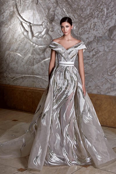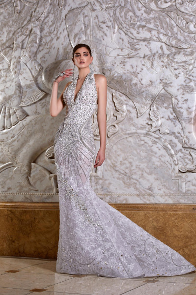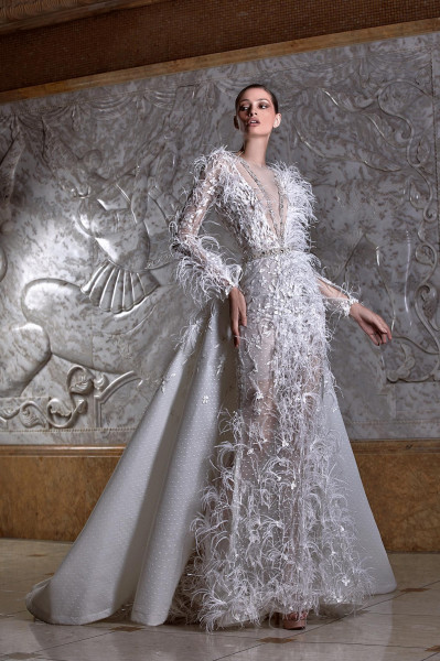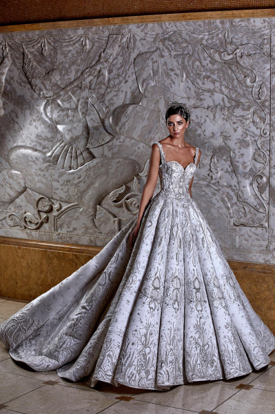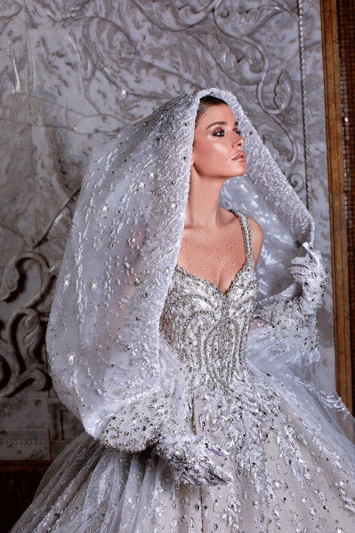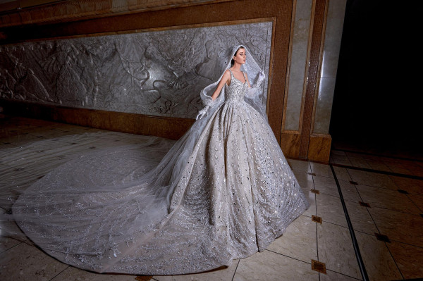 وتوّج المصمّم العالمي روبير أبي نادر مجموعته الجديدة بفستان زفاف إستثنائيّ ومبهر أتى كتحفة إبداعيّة نادرة بقالب مهيب ومزخرف بالضوء والنور المنعكس بفعل أحجار الكريستال الفاخرة، والأحجار الكريمة الرائعة التي زيّنت قالبه المشعّ والمتلألئ، ممّا منح عروس روبير أبي نادر لهذا الموسم مظهراً مهيباً وبهيّاً وفاخراً يفتن عيون الناظرين، ويسلب ألبابهم بعظمته وإشعاعه.
