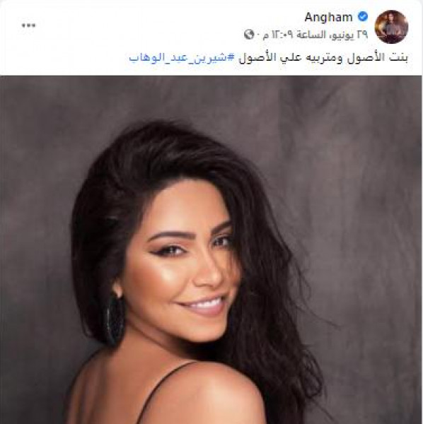 وعلقت أنغام على صورة شيرين قائلة: "بنت الأصول ومتربية على الأصول، شيرين عبد الوهاب".