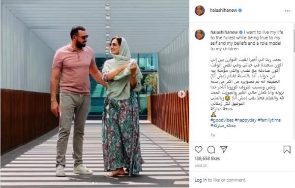 و كانت الفنانة حلا شيحة نشرت، الأسبوع الماضي، صوراً تجمعها بأطفالها وزوجها الداعية معز مسعود عبر (انستعرام) قالت فيها: "بحمد ربنا إني أخيراً لقيت التوازن بين إني أكون سعيدة في حياتي وفي نفس الوقت أكون صادقة مع نفسي، واللي مؤمنة بيه من جوايا، أمّا بالنسبة لفيلم (مش أنا) الحقيقة إنه تمّ تصويره منذ أكثر من سنة ونصف، وبسبب ظروف كورونا تأخر جداً نزوله، وأنا كمان حالي اتغير واتجوزت الحمد لله، والفيلم فعلاً بقى (مش أنا)، وأتمنى التوفيق لكل زملائي".