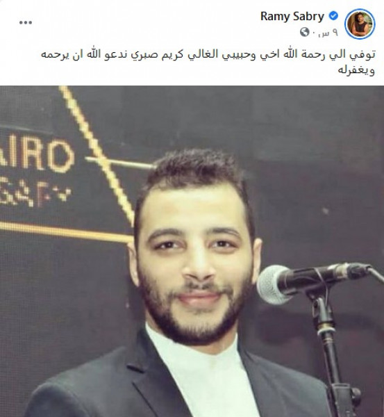 فُجع الفنان المصري رامي صبري، بوفاة شقيقه الأصغر كريم، ونشر الفنان المصري صورة شقيقه، وكتب معلقًا: "توفي الي رحمة الله اخي وحبيبي الغالي كريم صبري ندعو الله ان يرحمه ويغفرله".
