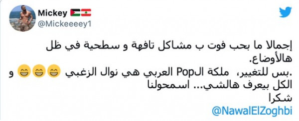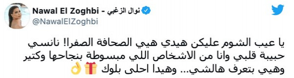اللافت أن نوال الزغبي دعمت التغريدات التي امتدحتها من قبل جمهورها، والتي كان منها "ما بعرف غير ملكة بوب واحدة هيي نوال الزغبي وبشهادة الجميع".