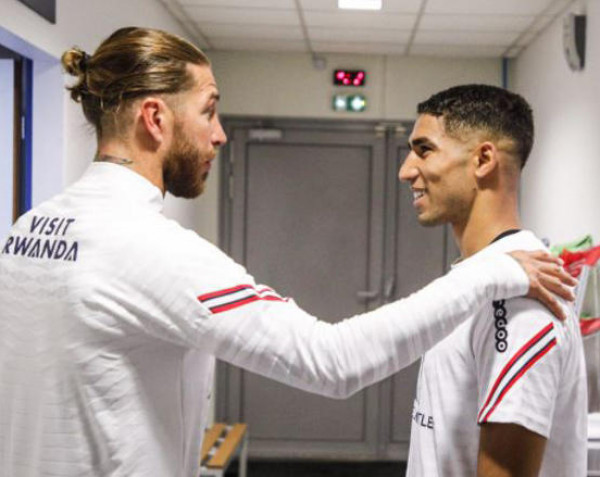 وبحسب صحيفة "ماركا" الإسبانية، فقد عانق راموس النجم المغربي أشرف حكيمي في غرفة ملابس سان جيرمان، وقال له: "لقد اتخذنا قرارًا جيدًا، أليس كذلك؟".