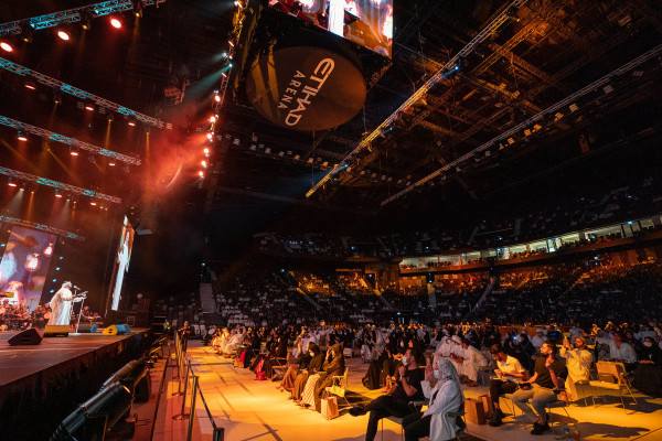 بعاصفة من التصفيق وصيحات الفرح والإعجاب، استقبل الجمهور الإماراتي والعربي في أبوظبي، سعادة الفنان حسين الجسمي "السفير المفوّض فوق العادة" بمجرد صعوده على خشبة مسرح "الإتحاد ارينا" في جزيرة ياس، خلال حفل عيد الأضحى المبارك الأضخم في الإمارات والمنطقة، والذي أعلن من خلاله الجسمي عودة الحفلات الغنائية الجماهرية في أبوظبي والإمارات، متنقلاً بصحبة وغناء الجمهور بين مجموعة كبيرة من أهم أغنياته على مدار ساعة ونصف من والتفاعل الشديد، على أنغام فرقته الموسيقية بقيادة المايسترو وليد فايد، ومشاركة الفنانة أصالة.