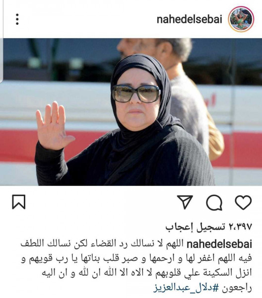 ونعى حسن الرداد صهر العائلة، وزوج ابنتهم إيمي سمير غانم، والدة زوجته عبر منشور على موقع تبادل الصور (انستجرام)، كتب فيه، "والله ما قادر أكتب ولى مصدق، توفيت إلى رحمة الله تعالى حماتي وأمي الغالية الفنانة الكبيرة دلال عبد العزيز، أطيب خلق الله".