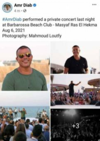أقدم الفنان عمرو دياب على حذف منشورًا من صفحاته الرسمية على مواقع التواصل الاجتماعي، كان يضم صورًا من حفله الأخير الذي أحياه في منطقة "رأس الحكمة" بالساحل الشمالي، بعد رحيل الفنانة دلال عبد العزيز، وذلك كنوع من الحداد عليها واحتراما لمشاعر اسرتها وجمهورها.
