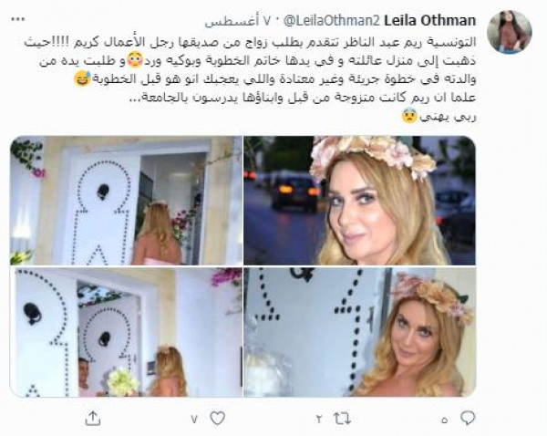 في المقابل نشرت ريم عبد الناظر على صفحتها على (انستغرام) مقطع فيديو أبدت فيه سعادة كبيرة بهذه الخطوة كما أكدت فيه أنها لن تفصح عن هوية الرجل الذي تقدمت لخطبته.