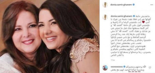 و قالت دنيا في المنشور: "ماعنديش حاجة أقولها غير إني فعلا بقيت يتيمة من غيرك يا أمي، إنتي علمتيني الرضا وأنا راضية وعلمتيني أقول على كل حاجة الحمد لله"، وفق (لها).