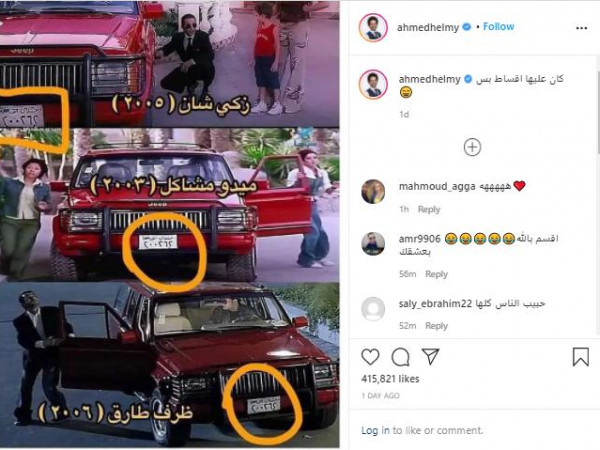 تناقل رواد مواقع التواصل الاجتماعي صورة لسيارة ظهرت نفسها في ثلاثة أفلام شارك في بطولتها الفنان المصري أحمد حلمي، وسط تعليقات ساخرة من الجمهور، متسائلين عن مالك السيارة وما إذا كان المنتج أم بطل العمل.