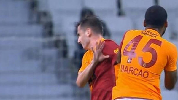وأظهر مقطع فيديو، مدافع غلطة سراي، البرازيلي ماركوس تكسييرا، وهو يندفع في الدقيقة 63 نحو زميله لاعب خط الوسط التركي كريم أكتورك أوغلو، قبل أن ينطحه ويوجه له بعض اللكمات.