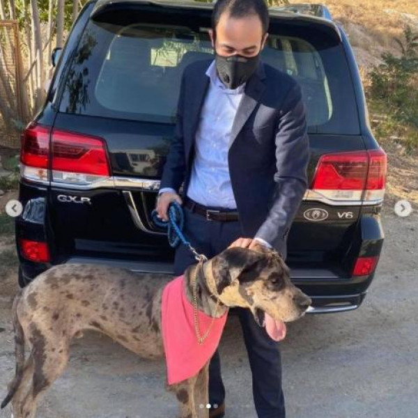 تناقل رواد مواقع التواصل الاجتماعي مجموعة من الصور لكلب يدعى "رعد جريت دان"، ضائع في منطقة تل الرمان.